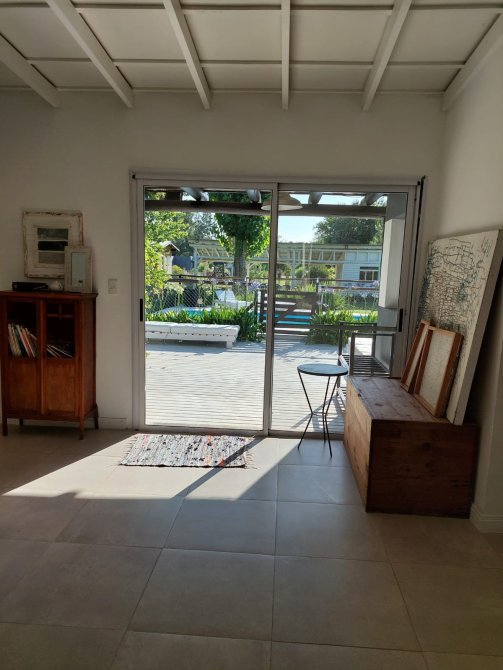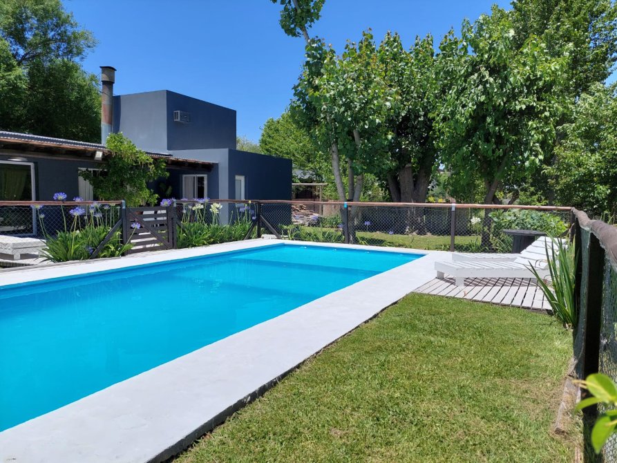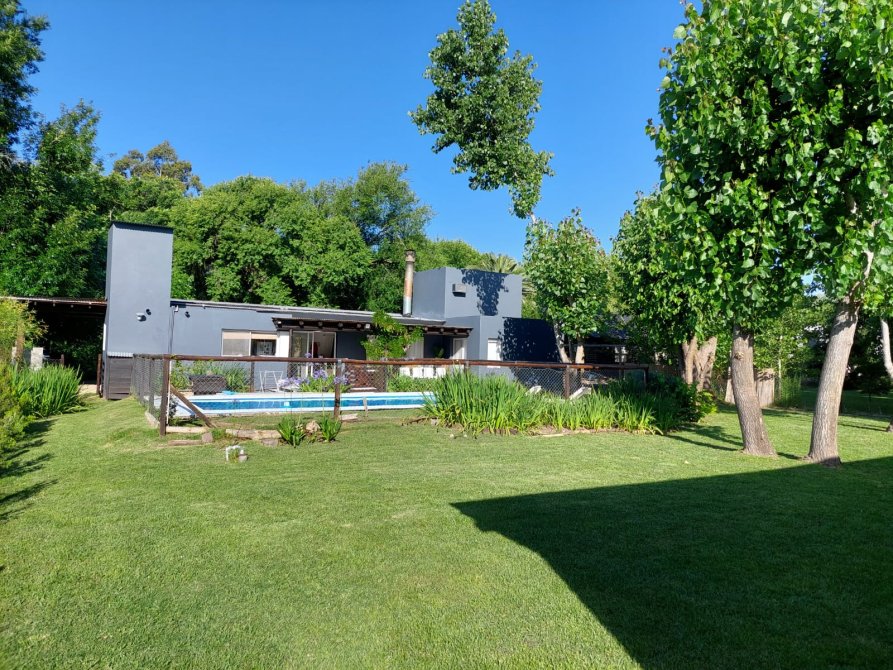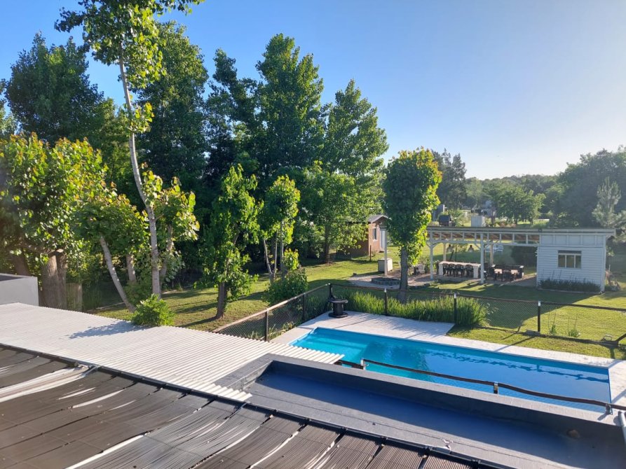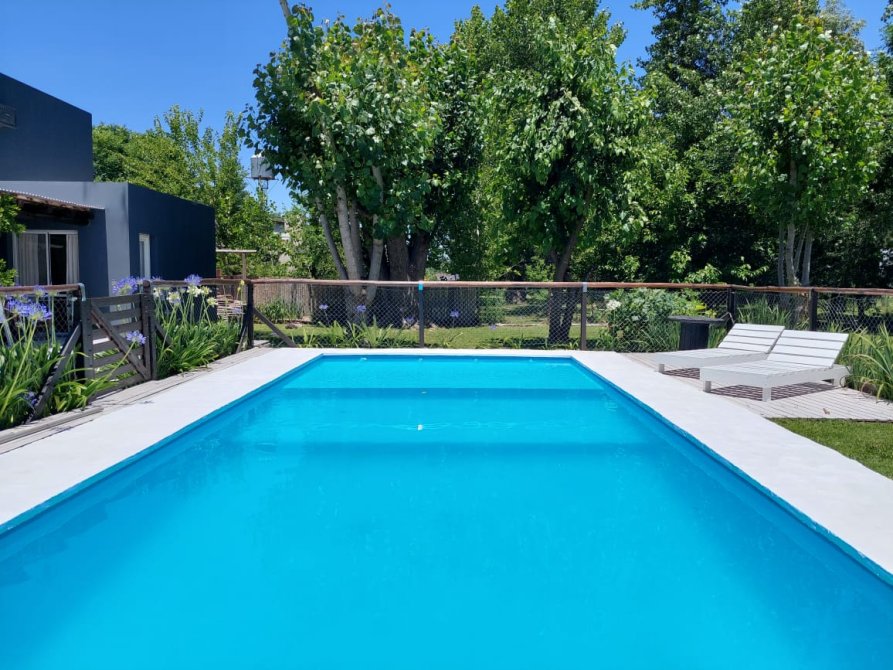 Espectacular casa con gran parque de 1200 m2 de superficie, compuesta por gran living de 7,50 x 5, cocina comedor integrada con barra de 8x4 , horno gastronomico, 3 dormitorios, uno de los cuales en suite, galeria con vista al parque y piscina, parrilla semicubierta, asador con estaca, piscina climatizada, quincho semicubierto, riego por aspersion automatizado, aire acondicionado frio calor en todos los ambientes.